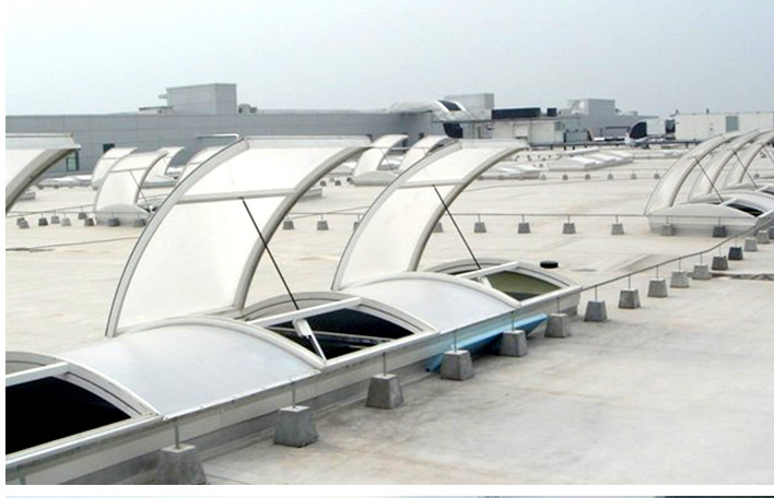 .3圓拱形排煙天窗成弧形結(jié)構(gòu),夏季有利于排水,冬季不積雪