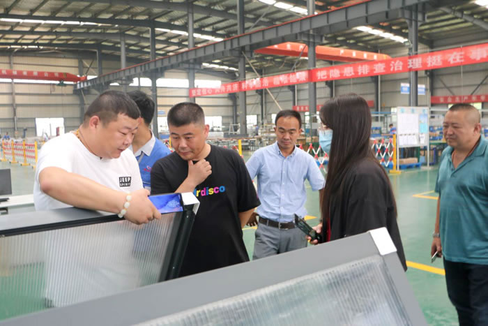 萬華化學(xué)集團(tuán)股份有限公司位于山東省煙臺市是一家全球化運營的化工新材料公司,自成立以來依托不斷創(chuàng)新的核心技術(shù)、產(chǎn)業(yè)化裝置及高效的運營模式,為客戶提供更具競爭力的產(chǎn)品及解決方案。正是對于自己的嚴(yán)格要求,萬華化學(xué)集團(tuán)對于排煙天窗這個項目也是嚴(yán)格要求,9月1日考察團(tuán)一行來到了鑫友生產(chǎn)車間,對車間生產(chǎn)進(jìn)行實地考察,對公司的產(chǎn)品質(zhì)量管理、生產(chǎn)規(guī)模、生產(chǎn)機(jī)械化、標(biāo)準(zhǔn)化程度更深入的了解,在深入了解生產(chǎn)流程后,考察團(tuán)對車間生產(chǎn)管理大加贊許,對產(chǎn)品的質(zhì)量管控也高度贊揚。