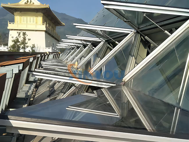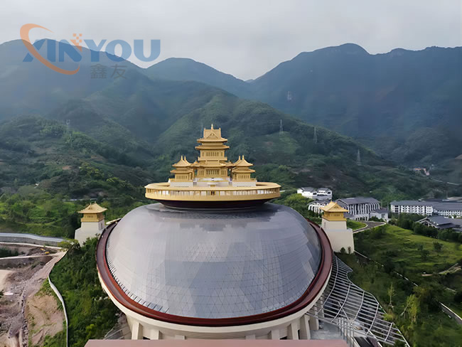 鑫友承接佛學(xué)院二期(彌勒圣壇)異形排煙天窗工程、遮陽(yáng)百葉工程,工程從火爐般熾熱的八月開(kāi)始建設(shè)施工,鑫友的安裝師傅們?nèi)淌苤崾畹目简?yàn),堅(jiān)守在自己的工作崗位上,于2021年10月14日完工交付使用。
