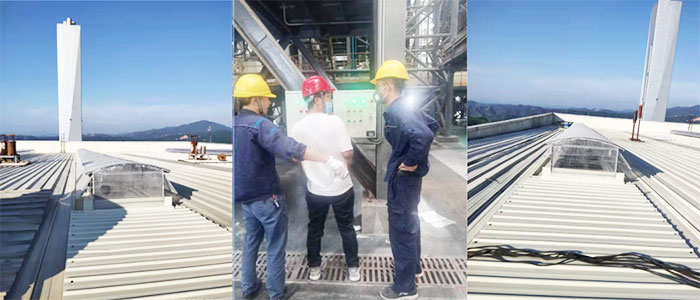 8月19日把產品發(fā)貨贛州,安裝人員 隨后趕至現場開安全教育會議,查看現場時發(fā)現廠房內設備進不去,鑫友們商議好布線方案經電廠副總同意后開始施工布線。高度太高,從九層穿線至三層,安裝人員克服困難,倍道而進,爭取早日交付。