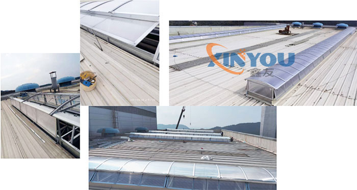 1. 圓拱型電動采光排煙天窗是工業(yè)建筑屋頂常用的一種通風采光設施,外觀優(yōu)美、通風排煙兼顧自然采光,可實現消防聯動控制,滿足消防排煙要求。