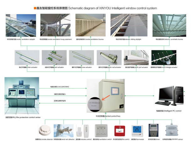 智能通風(fēng)控制系統(tǒng)由智能控制箱、墻裝開(kāi)關(guān)、遙控器、風(fēng)雨感應(yīng)器、開(kāi)窗器等組成,用戶(hù)可根據(jù)日常室內(nèi)環(huán)境的變化,通過(guò)遙控器或者開(kāi)關(guān)來(lái)對(duì)窗戶(hù)進(jìn)行開(kāi)啟和關(guān)閉的控制。