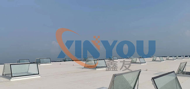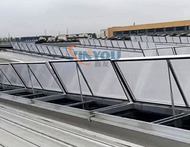 鑫友工業(yè)類電動消防排煙天窗主要適用于廠房等工業(yè)類大型建筑的屋頂采光、通風、排煙,設(shè)計依據(jù)建筑標準設(shè)計圖集09J621-2。