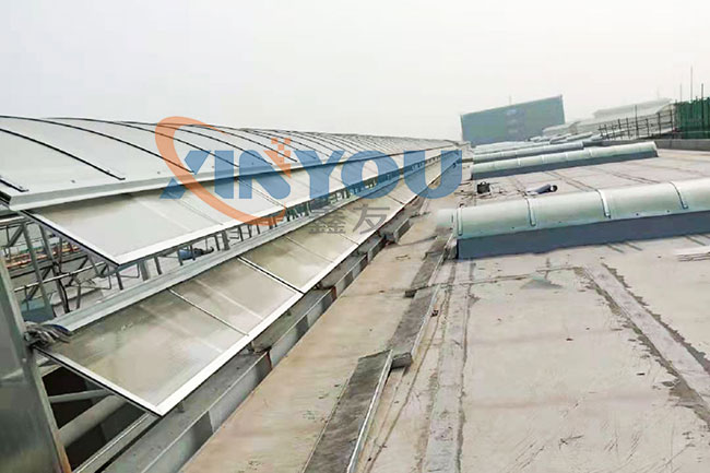 鑫友工業(yè)類電動(dòng)消防排煙天窗主要適用于廠房等工業(yè)類大型建筑的屋頂采光、通風(fēng)、排煙,設(shè)計(jì)依據(jù)建筑標(biāo)準(zhǔn)設(shè)計(jì)圖集09J621-2。