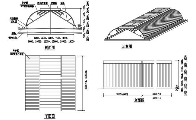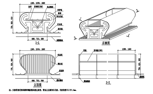 2. 主骨架和屋脊通風(fēng)天窗基座采用焊接或者螺栓連接,與屋面形成一個整體,具有較好的結(jié)構(gòu)安全性能。