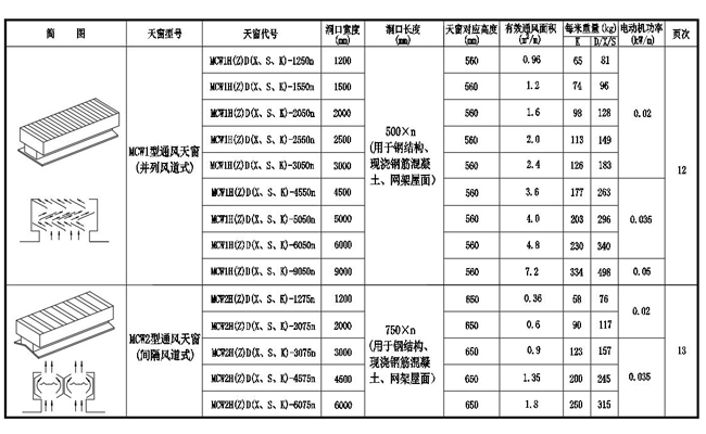 2. MCW2型通風(fēng)天窗(間隔風(fēng)道式)